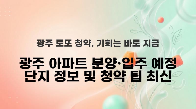 내 집 마련의 꿈, 정보가 곧 힘이죠. 오늘은 광주 지역의 최신 분양, 입주 정보와 청약 당첨 확률을 높이는 현실적인 꿀팁을 대방출하겠습니다.