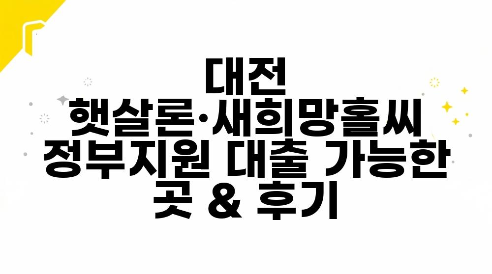 | 새희망홀씨 (1금융권) | • 주요 시중은행: KB국민은행, 신한은행, 우리은행, 하나은행, IBK기업은행, NH농협은행 등 • 지방 은행: 대전 지역을 포괄하는 충청권 은행 지점 등 • 신청 방법: 각 은행 지점 방문 또는 모바일 앱을 통한 비대면 신청 |