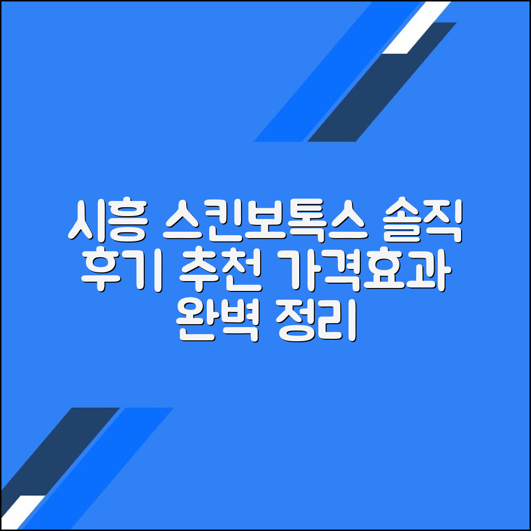 혹시 피부 탄력과 잔주름 개선을 위해 시흥시 스킨보톡스 후기 및 추천 병원가격·효과 총정리를 찾아보고 계신가요? 어떤 병원이 좋은지, 가격은 합리적인지, 효과는 확실한지 고민 많으셨죠? 이런 고민, 혼자만 하는 게 아니죠. 이 글에서는 제가 직접 경험하고 발품 팔아 모은 시흥시 스킨보톡스 후기 및 추천 병원가격·효과 총정리 핵심 정보를 공개합니다. 끝까지 읽으시면 현명한 선택을 위한 명확한 가이드가 될 겁니다.