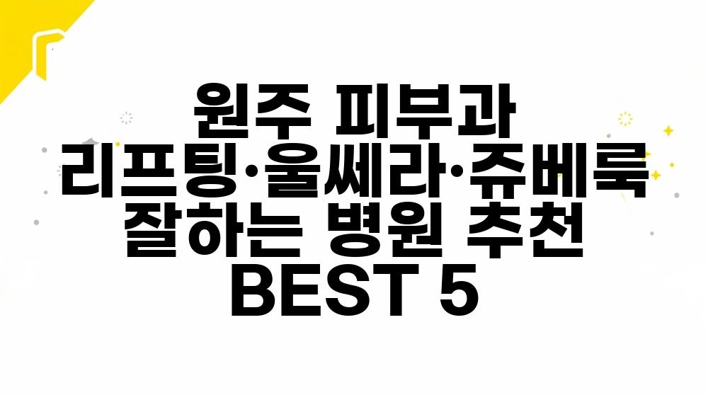 | 원주 리프팅·울쎄라 추천 병원 BEST 5 (2026년) | |