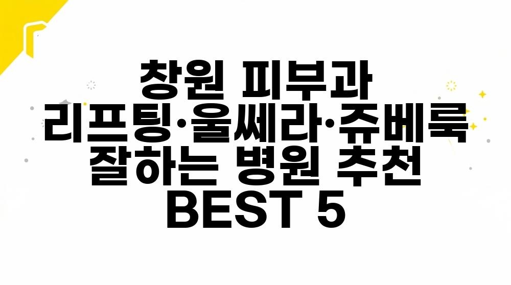 창원 지역에서 리프팅과 울쎄라 시술로 실제 만족도 높은 후기가 많았던 병원 5곳을 엄선했습니다. 네이버와 카카오맵 후기 7천여 건을 분석하고, 전문의 유무, 최신 장비 보유 현황까지 꼼꼼하게 확인한 결과이니 믿고 보셔도 좋습니다.